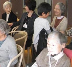 11月20日 収穫感謝の日 2011年11月30日 施設の向かいにある、福岡聖書キリスト教会教会学校の子供たちが「収穫感謝の日」とのことで 来園してくださいました。讃美歌とたくさんの果物、野菜のプレゼントをいただき、入居者様も とても喜ばれていました。