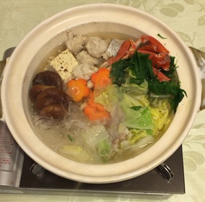 タラバガニ、黒豚、そしてたっぷりの野菜。そしてお酒も(♡´ω` )ノ'