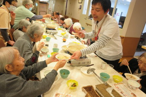 今回は食事会でちゃんこ鍋と郷土料理を提供しました。