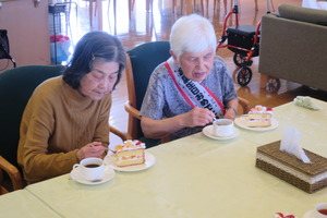 その後、皆様と一緒にケーキとコーヒー、紅茶でお祝いしました(⌒-⌒)