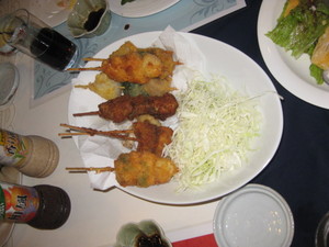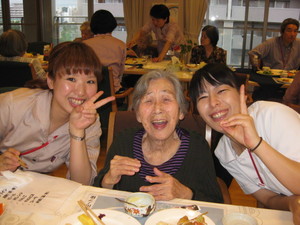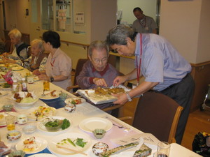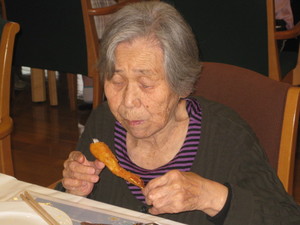 6月20日 食事会 2011年07月15日 新しい入居者様を迎えて食事会を行いました。今夜の一番は、栄養管理課が食堂のキッチンで作った 揚げたての串揚げです。新しく配属された職員の紹介もあり、おいしい食事と会話に花が咲きました。